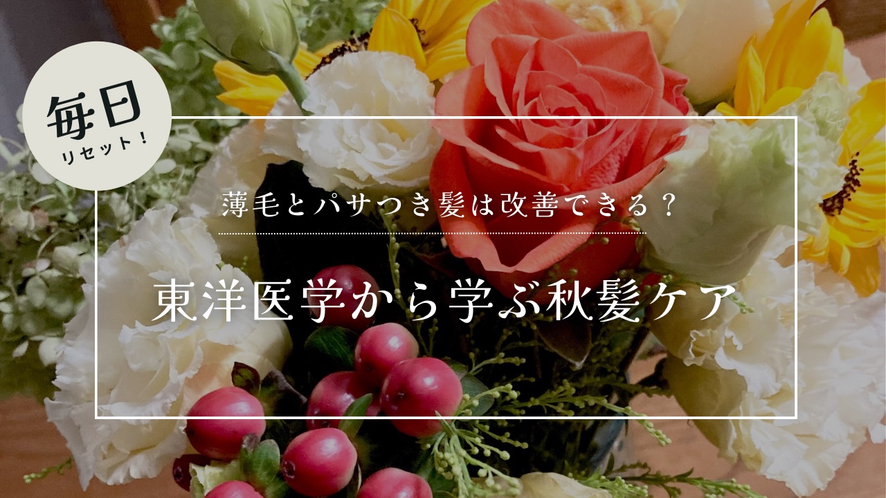 小さな積み重ねが、未来の髪を守る力になってくれるはずです。東洋医学の知恵をヒントに、自分の体をいたわりながら血と髪を養っていきませんか?今回は、【薄毛とパサつき髪は改善できる?】東洋医学から学ぶ秋髪ケアでした。毎日リセット!